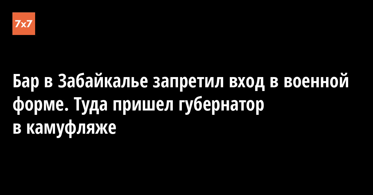 Губернатор Забайкалья Александр Осипов 25 июля посетил бар «Мираж» в городе Горном. Заведение запретило вход в военной форме. Но губернатор попал внутрь, несмотря на камуфляж. Об этом сообщило издание «Чита.ру».