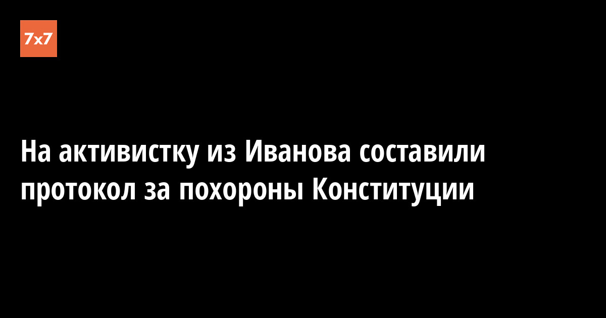 Полицейские составили на ивановскую активистку Ольгу Назаренко протокол о повторном нарушении установленного порядка организации митинга. Она организовала похороны Конституции России. Об этом сообщил проект «ОВД-Инфо» 22 августа.