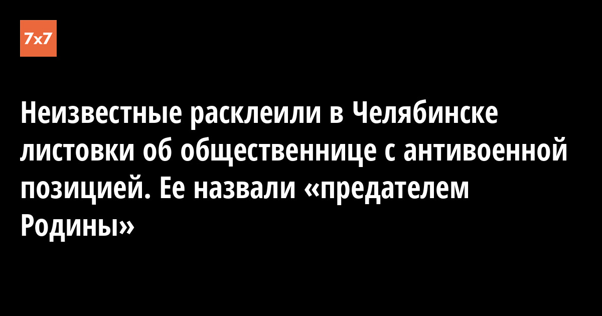 В Челябинске неизвестные повесили листовки об общественнице Надежде Вертяховской, оштрафованной за дискредитацию армии. В них сказано, что женщина — «предатель Родины» и «поддерживает нацистов». Об этом сообщил телеграм-канал «Ты не один 74».