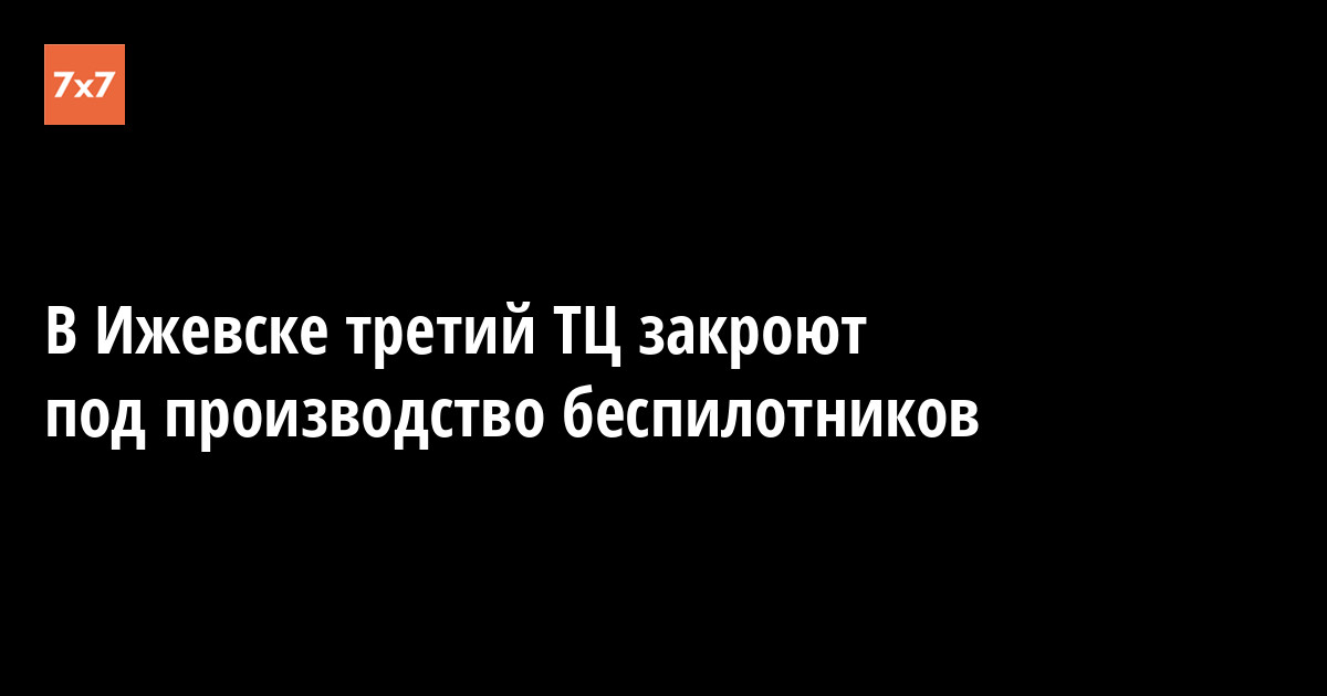 В Ижевске третий торгово-развлекательный комплекс отдали под производство беспилотников. Производство появится в ТРК «Столица». Его выкупила компания «Аэроскан», которая уже разместила производство БПЛА в другом центре «Италмас». Об этом 15 сентября сообщил проект «Удмуртия против коррупции».