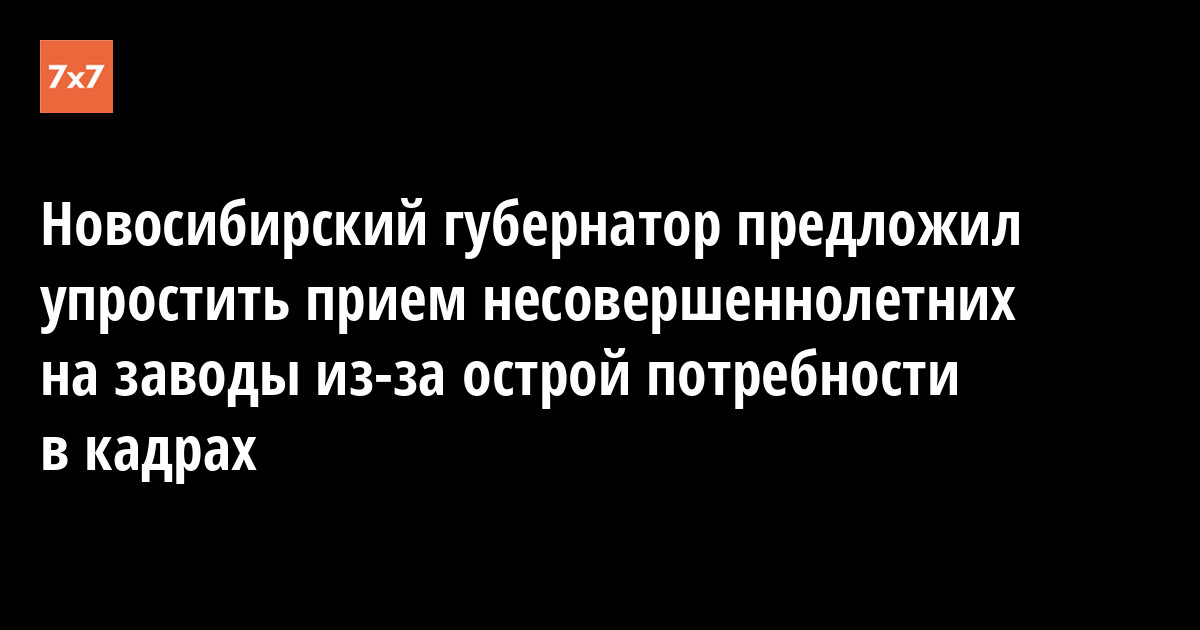 Губернатор Новосибирской области предложил упростить прием несовершеннолетних на работу на заводах. По его словам, предприятия «крайне остро» нуждаются в работниках. Об этом 18 сентября сообщила пресс-служба губернатора.