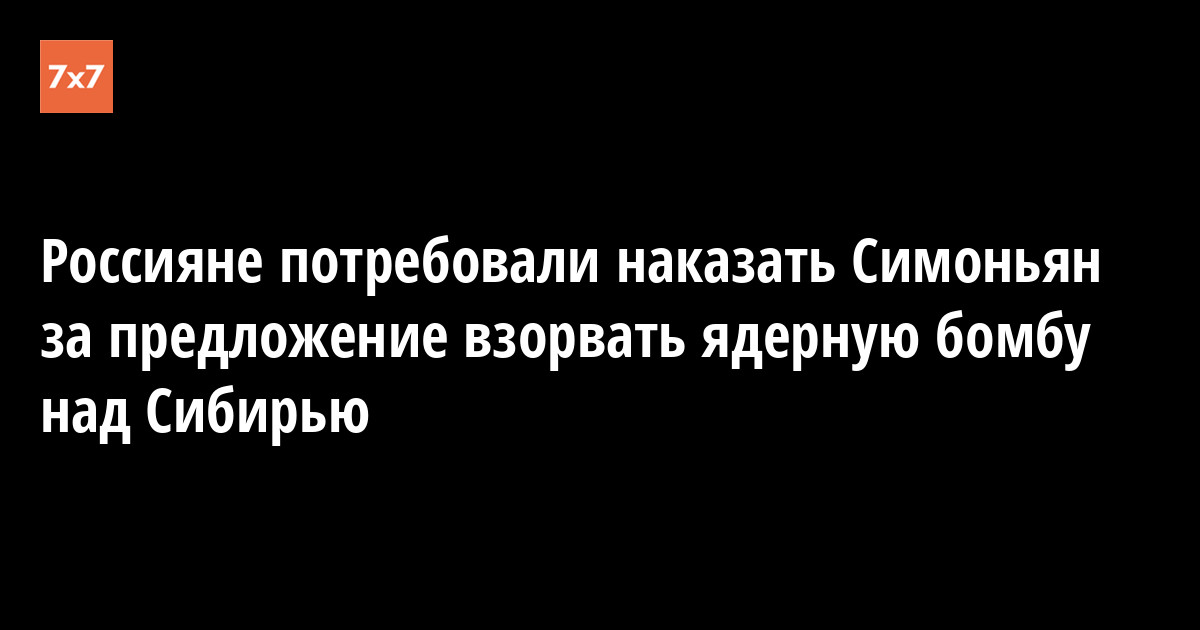«Данные слова Маргариты Симоньян, по сути, допускают уничтожение всего этого ядерным взрывом, оправдывают смерть и страдания на территории Сибири. Нельзя допустить, чтобы такие высказывания остались безнаказанными», — написал он на сайте Change.org.