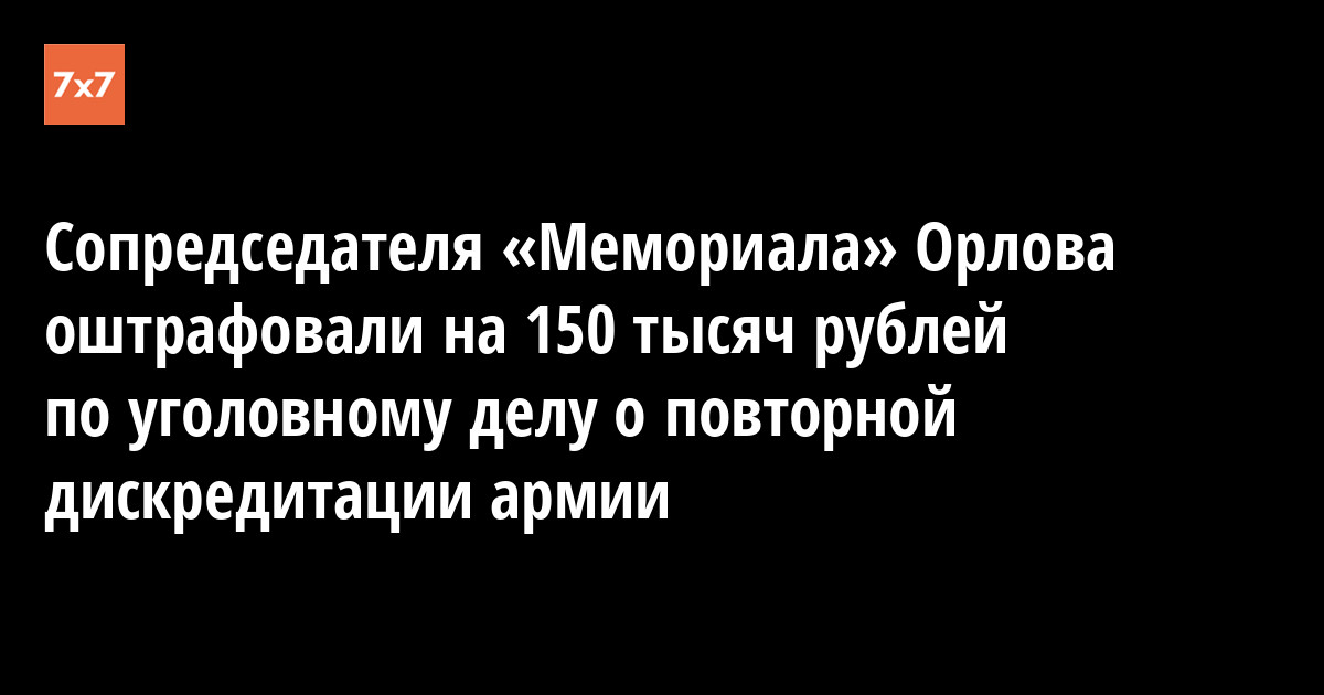 Суд в Москве 11 октября оштрафовал сопредседателя «Мемориала» Олега Орлова на 150 тыс. руб. за повторную дискредитацию армии. Уголовное дело на него возбудили из-за антивоенной статьи в фейсбуке*. Об этом сообщили в телеграм-канале «Общество Мемориал».