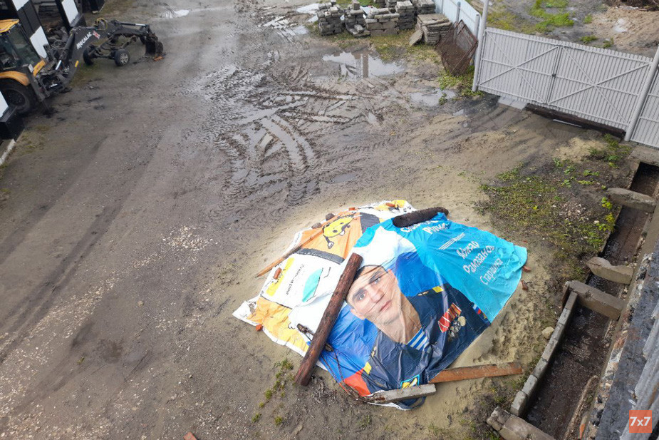 «Я дал указание купить песок и накрыть его. Горе-строители где-то купили баннеры, один из которых оказался с участником СВО», — объяснил владелец земли.