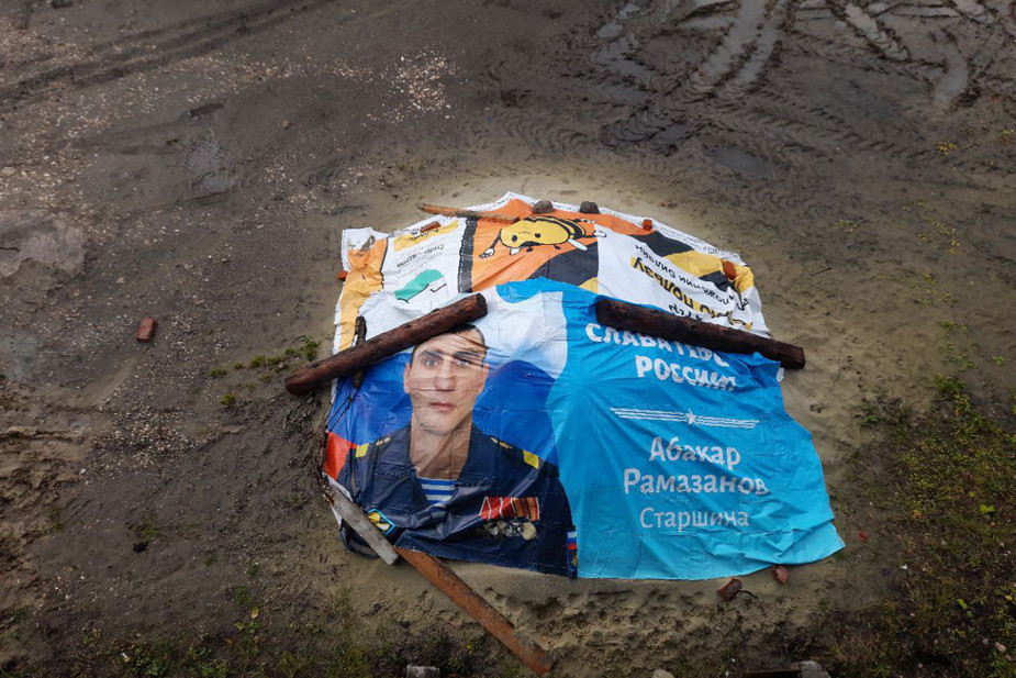 Жители Пензы 7 ноября увидели на строительной площадке баннер с портретом погибшего на войне уроженца Дагестана Абакара Рамазанова. Строители использовали его для защиты песка от дождей. После этого их уволил собственник участка, на котором лежал плакат. Он назвал своих наемных рабочих «горе-строителями» и принес извинения.
