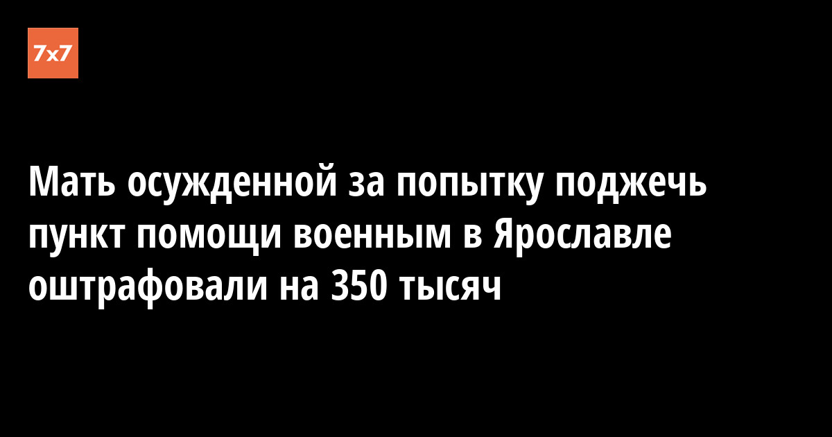 Мать осужденной за попытку поджечь пункт помощи Светлана Зотова получила штраф в размере 350 тыс. руб. Жительницу Ярославля признали виновной в оправдании терроризма. Об этом Зотова 7 декабря сообщила «7х7».