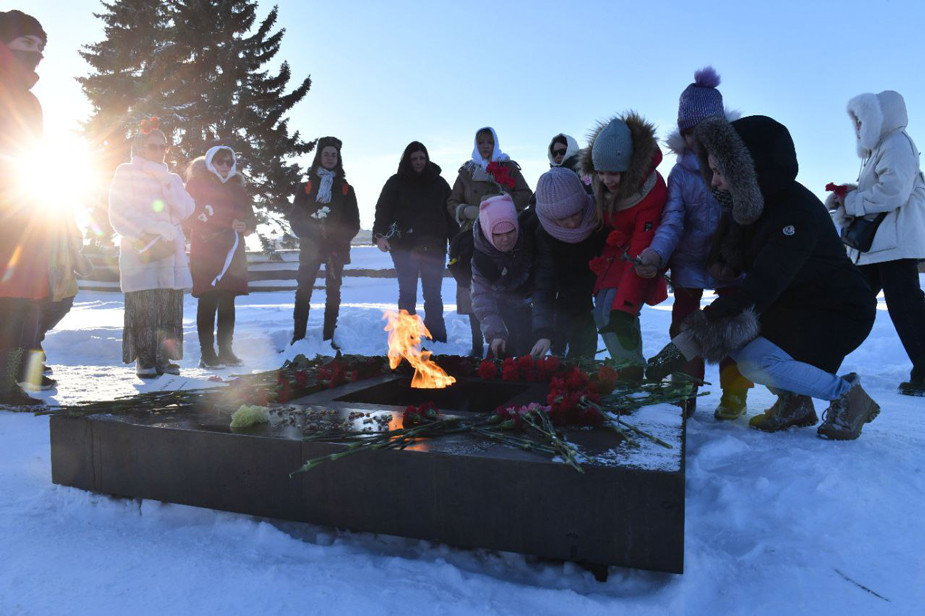 Участницы движения за возвращение мобилизованных «Путь домой» каждую неделю надевают белые платки и возлагают цветы к вечному огню в своих регионах. Подобные акции прошли в 20 января в Москве, Петербурге, Абакане, Владивостоке.