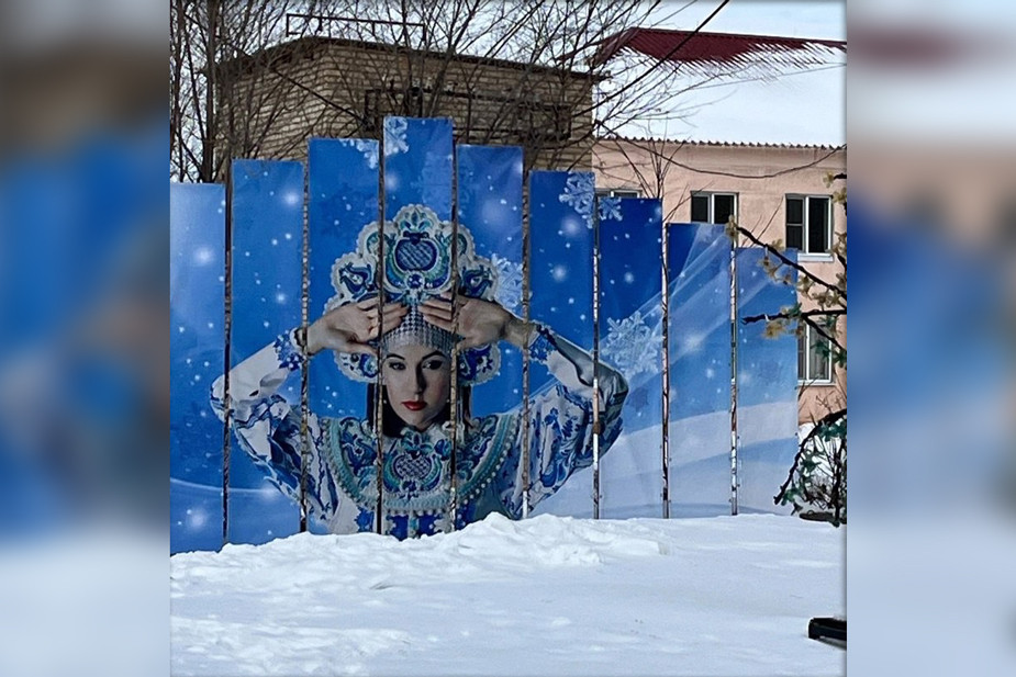 The next day, the wooden board with the face of the 'Snow Maiden' was removed. District authorities claimed that the image was found online by the employee responsible for the banner production. His search request was 'a girl wearing a Gzhel-style dress'; the image was aimed to symbolize the upcoming Winter Rural Spartakiad 2024.