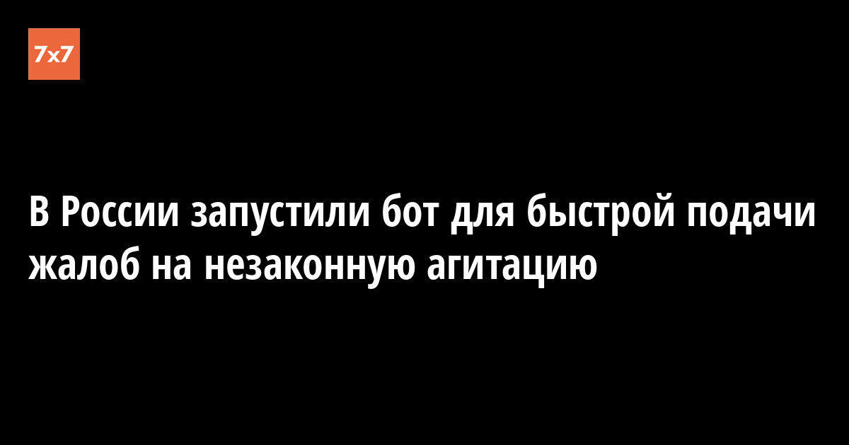В России запустили бот для быстрой подачи жалоб на незаконную агитацию. Сервис сделали юрист Михаил Беньяш и программист Иван Шукшин. Это бот, в который нужно прислать скриншот или фото незаконной агитации и указать место, где зафиксировано нарушение. Бот автоматически создаст жалобу и подаст ее через сайт МВД. Это займет 2–3 минуты.