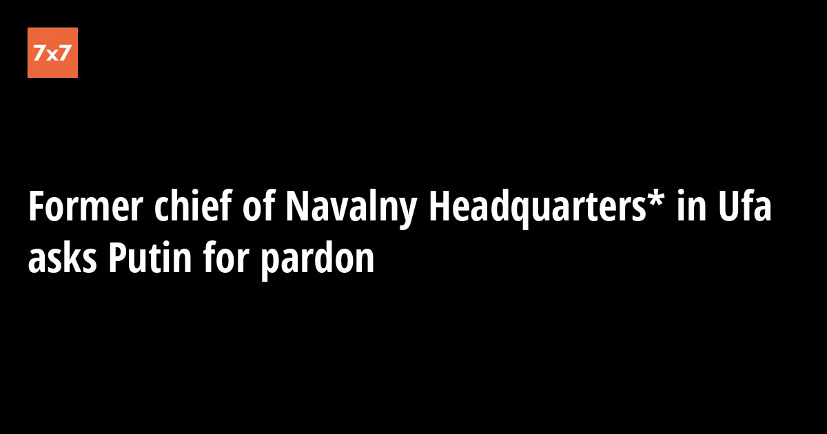 Russia Today reported that Liliya Chanysheva, the former chief of Navalny Headquarters* in Ufa, requested a pardon from Putin. Her lawyer confirmed her intentions to '7x7' on May 14th.