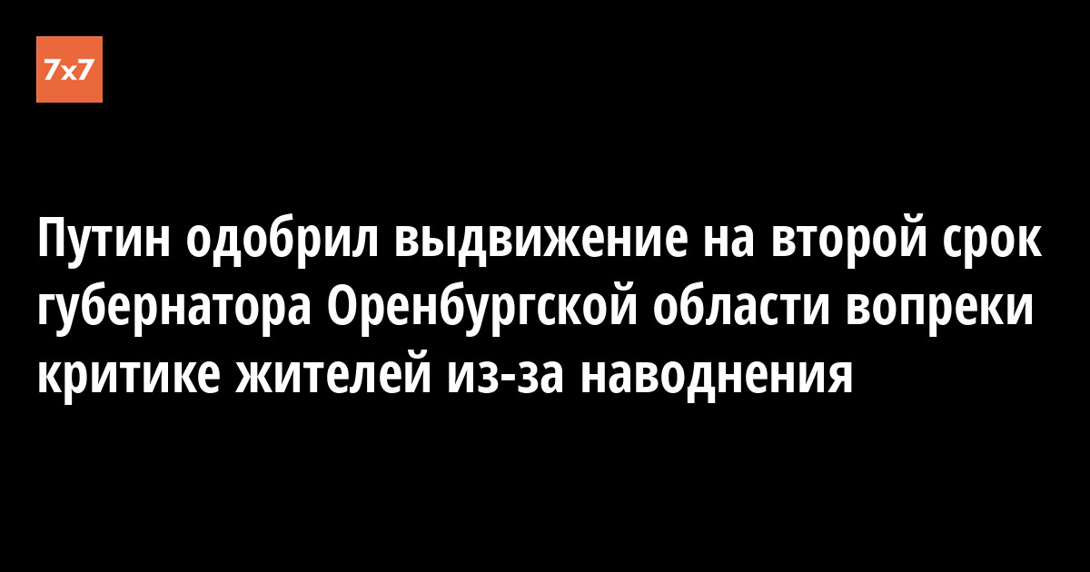 Путин одобрил выдвижение на второй срок губернатора Оренбургской области вопреки критике жителей из-за наводнения. Информация об этом появилась на сайте Кремля 29 мая.