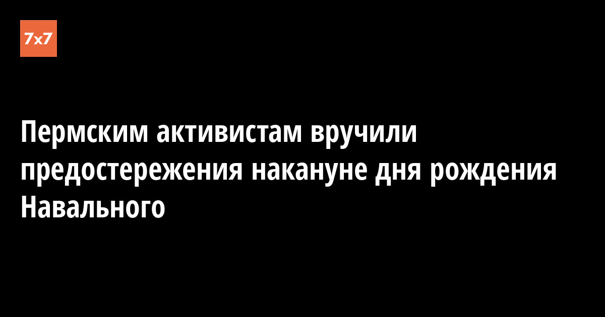 Полицейские вручили предостережения о недопустимости нарушения закона пермским активистам перед днем рождения политика Алексея Навального, рассказал «7х7» пермский юрист Артем Файзулин 3 июня.
