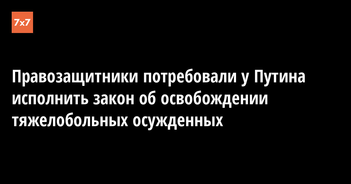 Правозащитники создали петицию с требованием к Путину исполнить закон об освобождении тяжелобольных осужденных. К 19 июня обращение подписали более 330 человек.