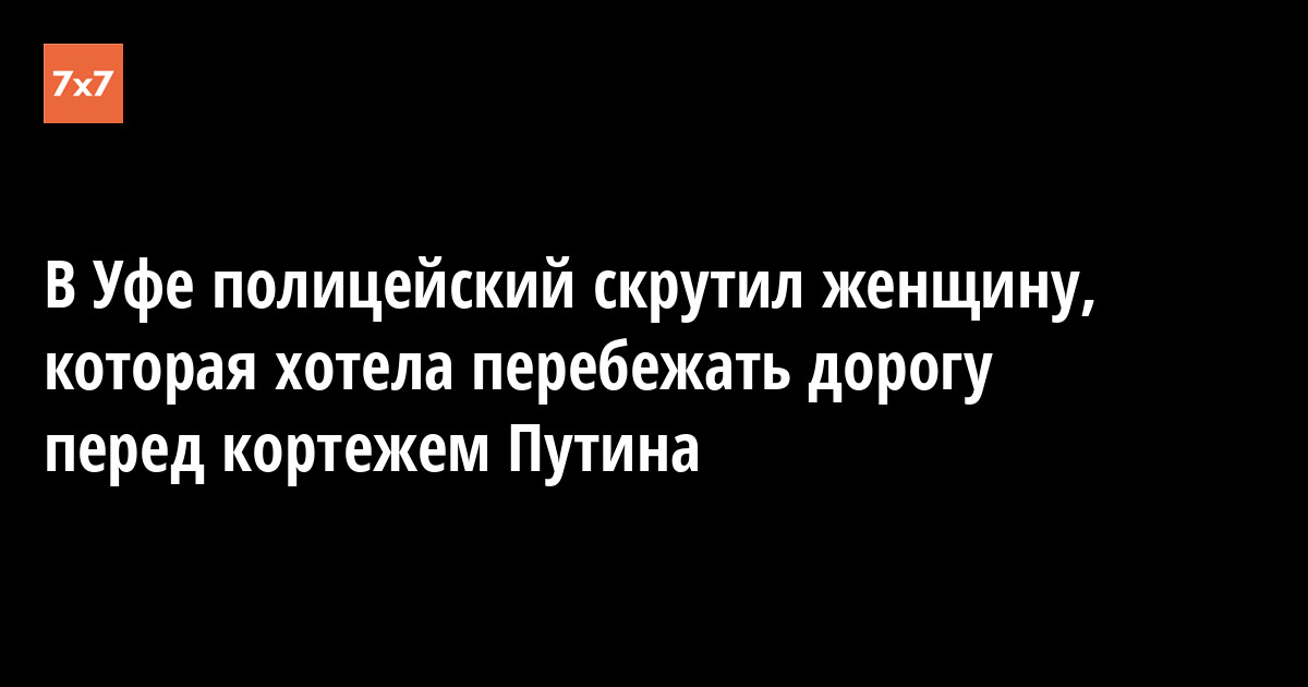 В Уфе женщина спешила домой и пыталась перебежать дорогу перед кортежем Путина. Полицейский повалил ее на дорогу и скрутил руки. Видео с инцидентом опубликовал 17 октября в Telegram паблик Ufa_rb.