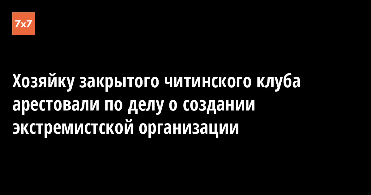 Суд поместил 22-летнюю хозяйку закрытого читинского клуба под домашний арест по делу об «организации деятельности экстремистской организации» (статья 282 УК РФ). Об этом сообщила 28 октября Chita.ru.