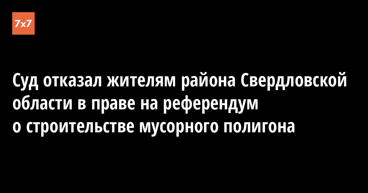 Суд 24 апреля отказал жителям Сысертского района в праве на референдум о строительстве мусорного полигона. Об этом 24 апреля сообщила группа организации «Щит малой родины».