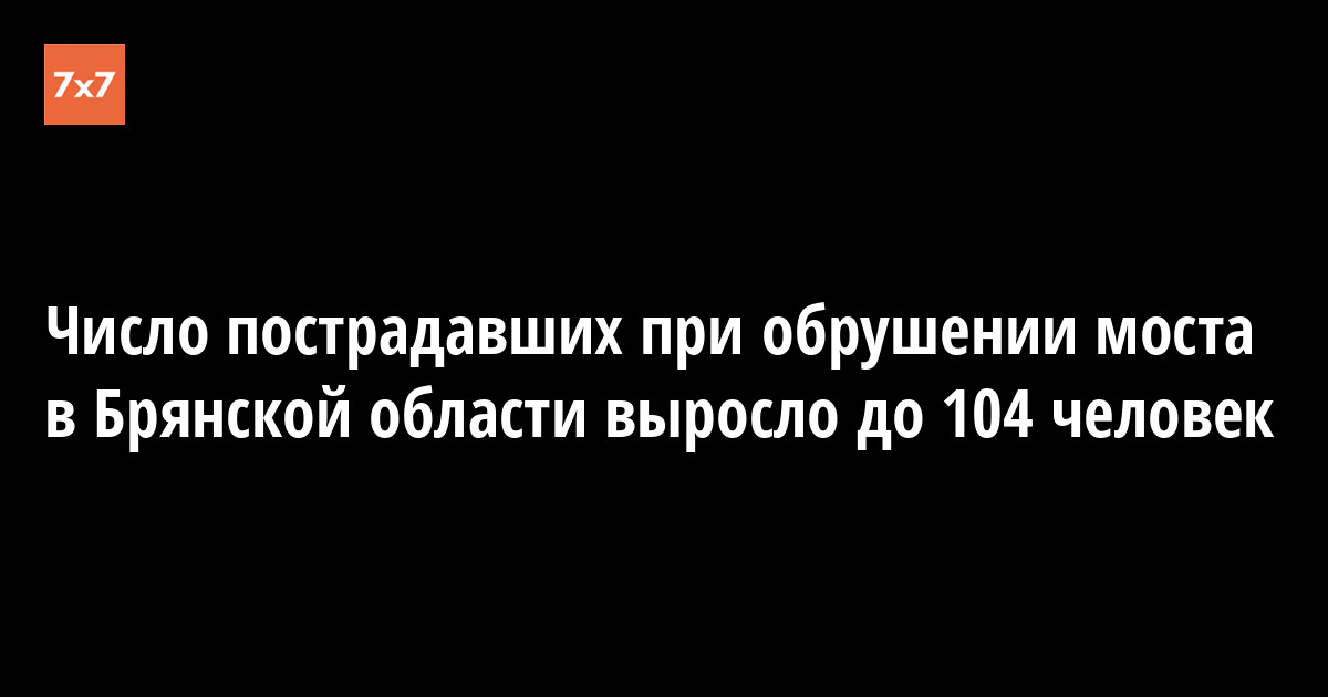 При обрушении моста в Выгоничском районе Брянской области в ночь на 1 июня пострадали 104 человека, сообщил ТАСС со ссылкой на губернатора региона Александра Богомаза.