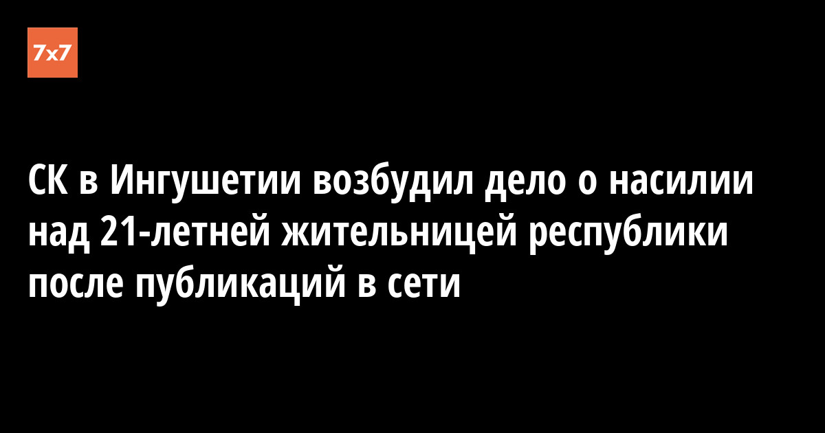 Следственное управление СК России по Республике Ингушетия возбудило уголовное дело по факту противоправных действий в отношении 21-летней жительницы региона. Поводом стала публикация в интернете, выявленная 15 января 2026 года в ходе мониторинга, сообщили в ведомстве.