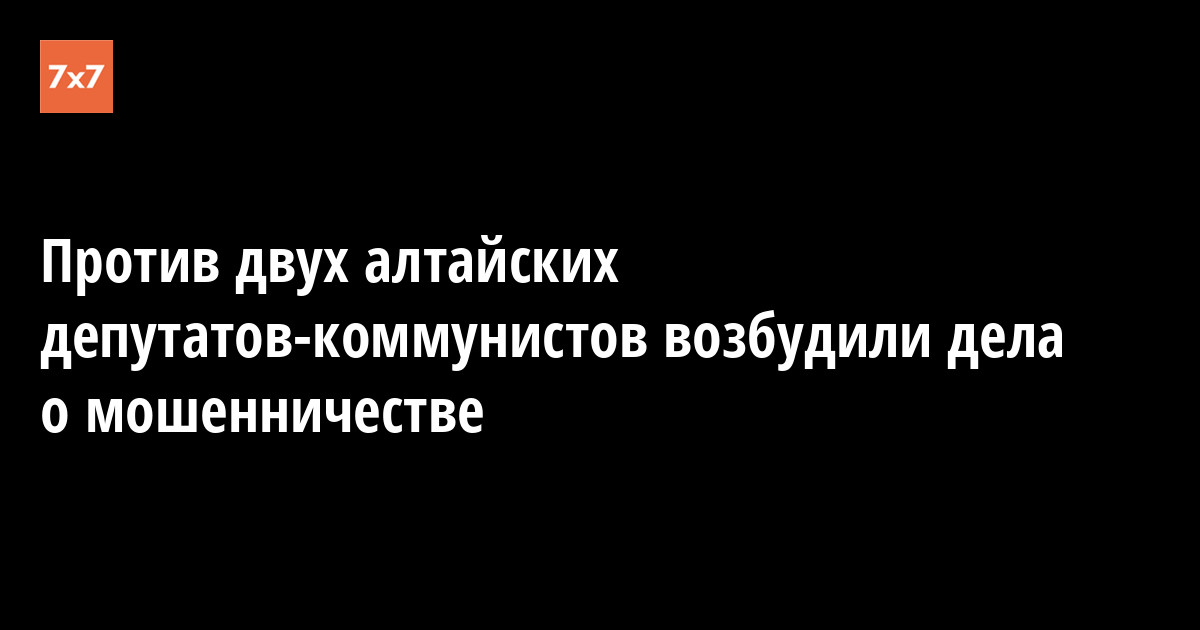 Следственный комитет возбудил уголовные дела о мошенничестве в особо крупном размере (часть 4 статьи 159 УК РФ) против двух депутатов Алтайского краевого заксобрания от КПРФ и помощника одного из них, сообщила 5 февраля пресс-служба ведомства.