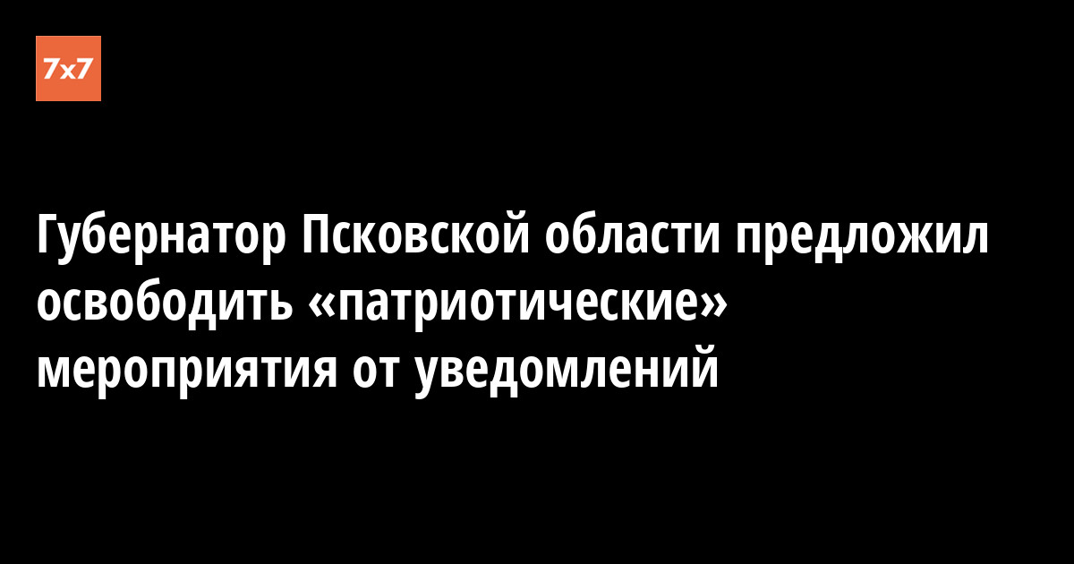 Губернатор Псковской области Михаил Ведерников внес в областное Собрание законопроект, который разрешит проводить ряд публичных мероприятий без обязательного уведомления властей. Внимание на это обратила «Псковская губерния».