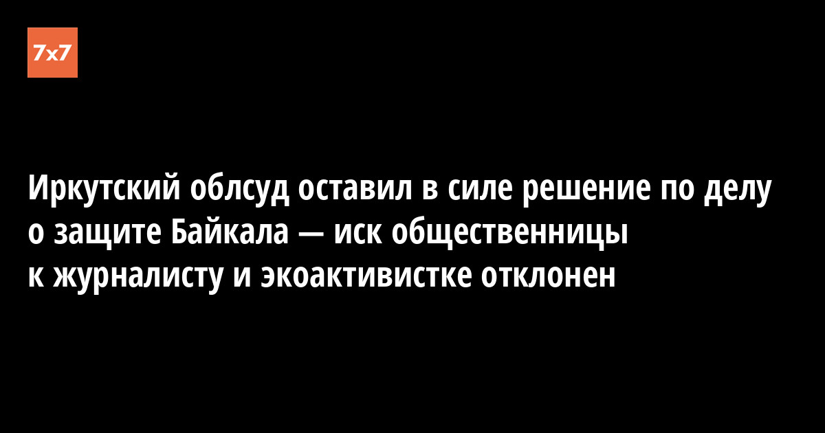 Иркутский областной суд оставил в силе решение Свердловского районного суда Иркутска, который ранее отказал общественнице Галине Арсеньевой в иске о защите чести, достоинства и деловой репутации к журналисту Сергею Королеву и экоактивистке Любови Аликиной. Апелляционная жалоба Арсеньевой удовлетворена не была, решение вступило в законную силу. Об этом рассказал «БГ Иркутск».
