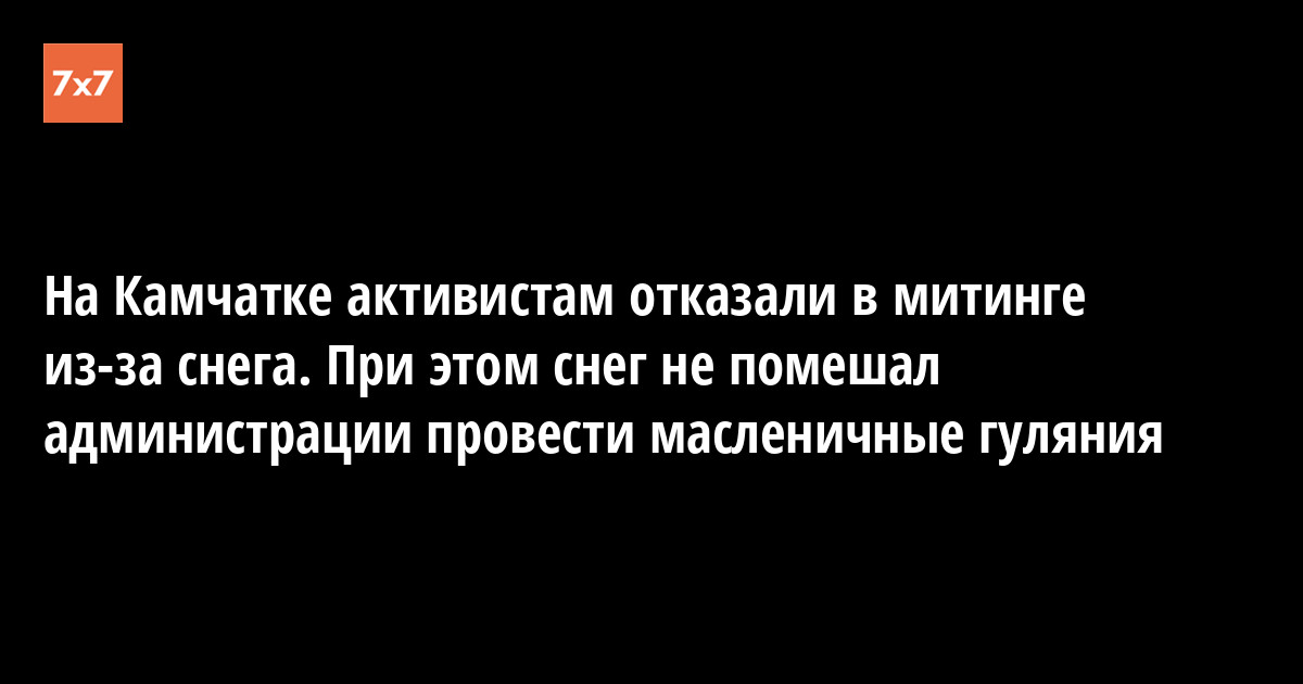 Администрация Петропавловска-Камчатского не согласовала митинг против политики Роскомнадзор — блокировок и замедления Telegram, а также продвижения госмессенджера Max. Активистам отказали, сославшись на нерасчищенную площадку в сквере бывшего ДК КГТУ, режим ЧС после январских циклонов и нехватку техники для уборки снега.