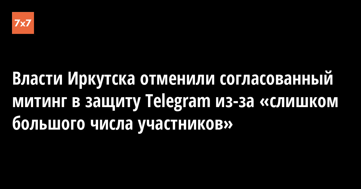 Администрация Иркутска отозвала разрешение на митинг «За свободный интернет» и в защиту Telegram, который планировался 1 марта. Об этом сообщил лидер иркутского отделения партии Яблоко Григорий Грибенко.
