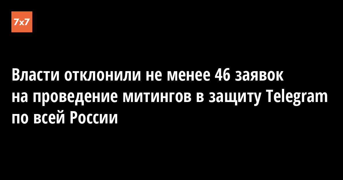 В России отклонили 46 заявок в 40 городах в 28 субъектах федерации на проведение митингов против блокировки Telegram, подсчитали журналисты «7х7».