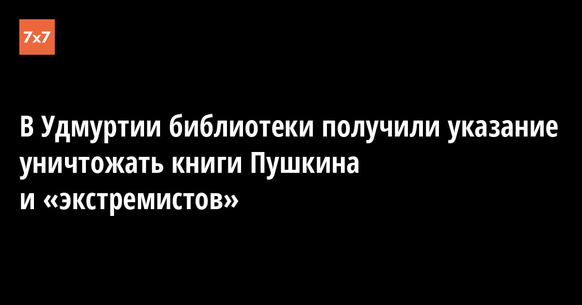 Библиотеки Удмуртии получили разнарядку уничтожить книги авторов, которых власти считают террористами и экстремистами, а также материалы запрещённого фонда Сороса, включая издания Пушкина и детские энциклопедии. Об этом рассказал телеграм-канал «Удмуртия против коррупции».