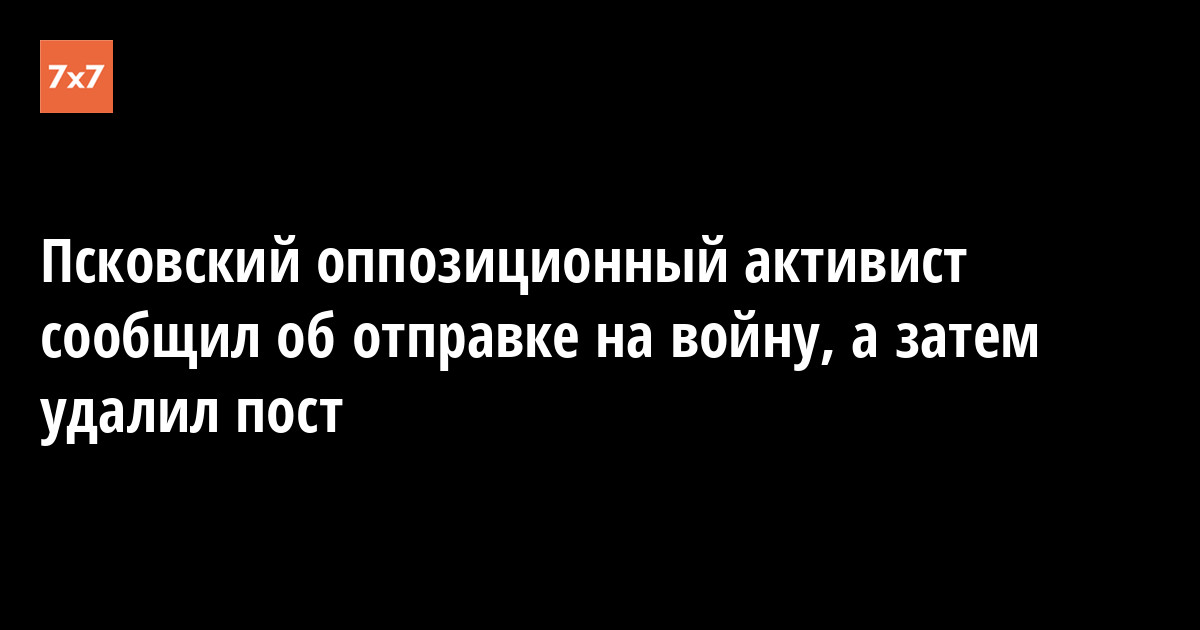 Псковский оппозиционный активист сообщил об отправке на войну, а затем удалил пост