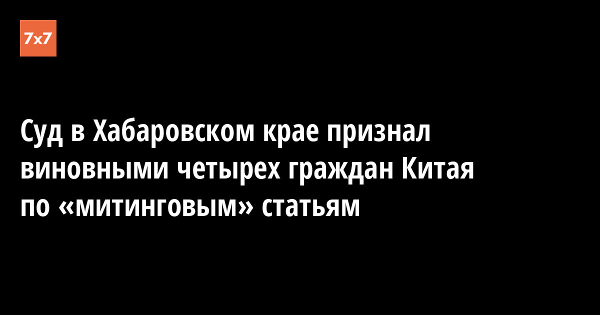 Центральный районный суд Комсомольска-на-Амуре признал виновными Цзин Цзюньпэна, Чжоу Чжаодана, Го Гуаньбэя и Фэна Ао по административной статье об организации массового сбора граждан в общественном месте, в результате которого произошло нарушение общественного порядка (ч. 1 ст. 20.2.2 КоАП). На это обратила внимание «Медиазона».