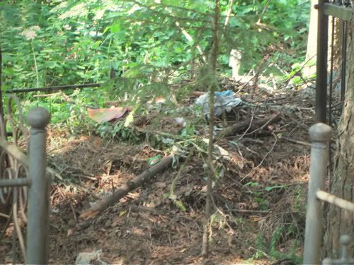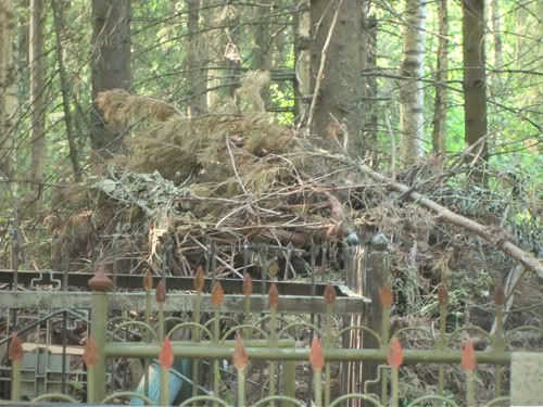 На кладбище то тут, то там встречаются сваленные или сильно покосившиеся деревья:
