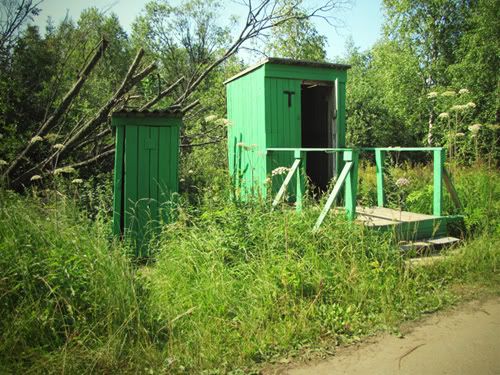 На выходе два туалета. Один большой и с буквой Т. Второй меньше и без букв: