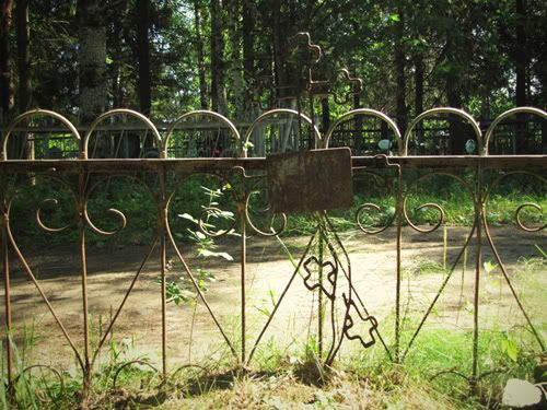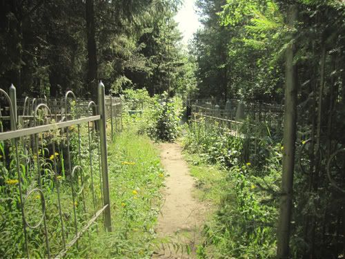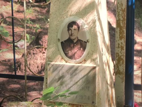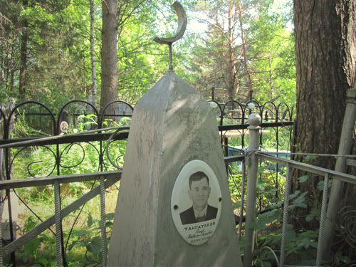 Находится оно недалеко от города, в сторону Краснозатонского, недоезжая до моста. Если на городском кладбище было полно могил известных личностей, военных, почетных граждан, бандитов 90-ых, то кладбище в Кочпоне показалось нам попроще.