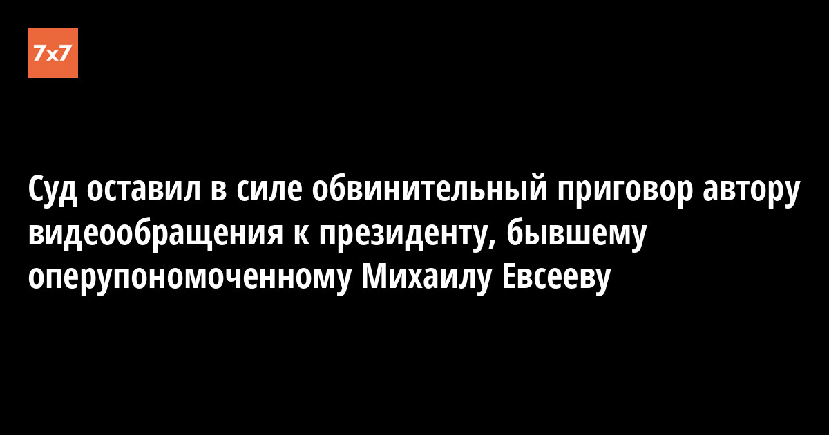 17 ноября, чрез месяц с небольшим после выступления Евсеева в вышеназванном процессе, он был осужден Верховным судом Коми на 1 год и 3 месяца колонии-поселения по ч.1 ст. 283 УК РФ (Разглашение сведений, составляющих государственную тайну, лицом, которому она была доверена или стала известна по службе или работе, если эти сведения стали достоянием других лиц, при отсутствии признаков государственной измены). Выслушав приговор, Михаил Евсеев передал журналистам обращение, в котором заявил, что за подобный проступок никто никогда не был осужден на реальный срок и что «фактически» его «осудили за видеообращение к президенту».