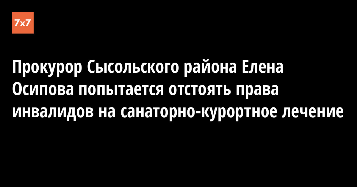 8 февраля Сысольский райсуд планирует приступить к рассмотрению 35 исковых заявлений районного прокурора, поданных в интересах граждан, к Коми региональному отделению Фонда социального страхования и его филиалу в селе Визинге. Прокурор намерен в судебном порядке обязать госучреждение предоставить инвалидам положенные им по закону санаторные путевки по профилю лечения. По сведениям «7x7», Сысольская прокуратура — единственный надзорный орган в республике, выступивший в защиту вышеозначенных прав социально незащищенных граждан.