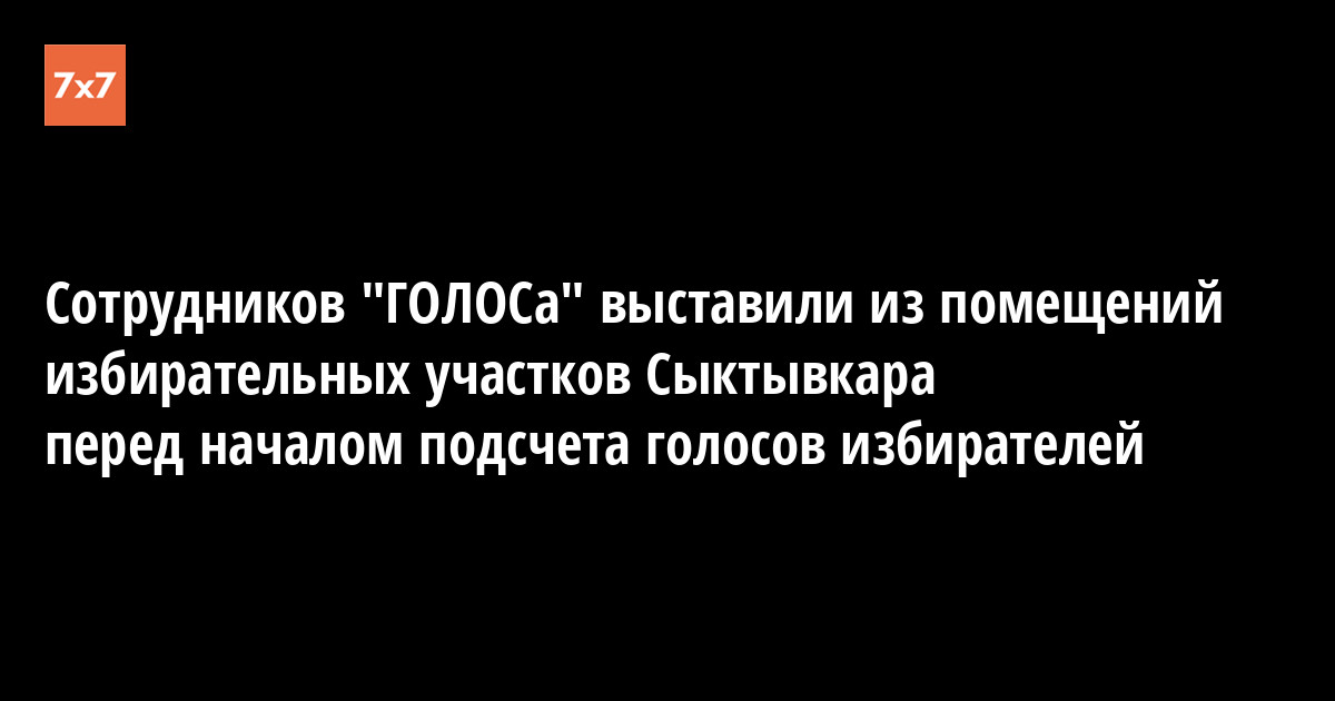 Как стало известно «7x7», большинство из корреспондентов газеты «Гражданский Голос», осуществлявших наблюдение за процессом выборов на избирательных участках Сыктывкара, выпроводили с помощью сотрудников милиции из участковых помещений перед началом подсчета голосов избирателей.