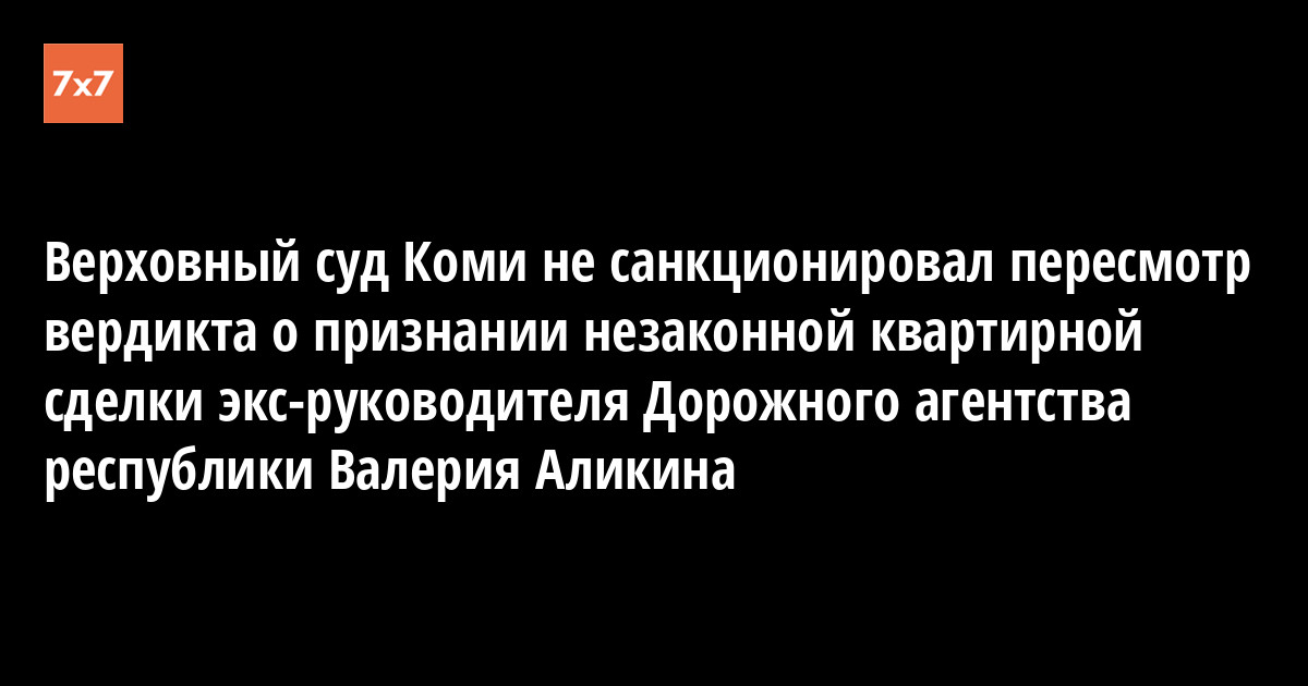 Сегодня, 21 апреля, Верховный суд Коми оставил в силе решение Сыктывкарского горсуда, отказавшегося пересматривать по вновь открывшимся обстоятельствам вынесенный в прошлом году вердикт о признании недействительным договора о бесплатной передаче в собственность бывшего руководителя Дорожного агентства Коми, ныне заместителя генерального директора Фонда поддержки инвестиционных проектов РК Валерия Аликина и его сына Даниила служебной квартиры, незаконно приватизированной и проданной ими впоследствии, и взыскании с чиновника в доход бюджета рыночной стоимости жилья в размере 3 млн. руб.