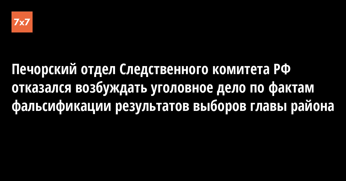 Печорский отдел Следственного комитета РФ отказался возбуждать уголовное дело по фактам фальсификации результатов выборов главы района