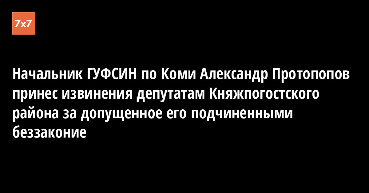 Сегодня, 8 июля, депутаты МО МР «Княжпогостский» Николай Дидюк и Людмила Колтырина не смогли попасть на охраняемую территорию исправительной колонии (ИК)-51, расположенной в Емве — сотрудники колонии, игнорируя действующий закон, позволяющий депутатам без специального на то разрешения посещать места исполнения наказания, и ссылаясь на некие ведомственные инструкции, не пропустили народных избранников дальше КПП ИК-51. Спустя несколько часов после инцидента начальник ГУФСИН РФ по Коми генерал-лейтенант Александр Протопопов принес извинение депутатам за допущенное его подчиненными беззаконие.