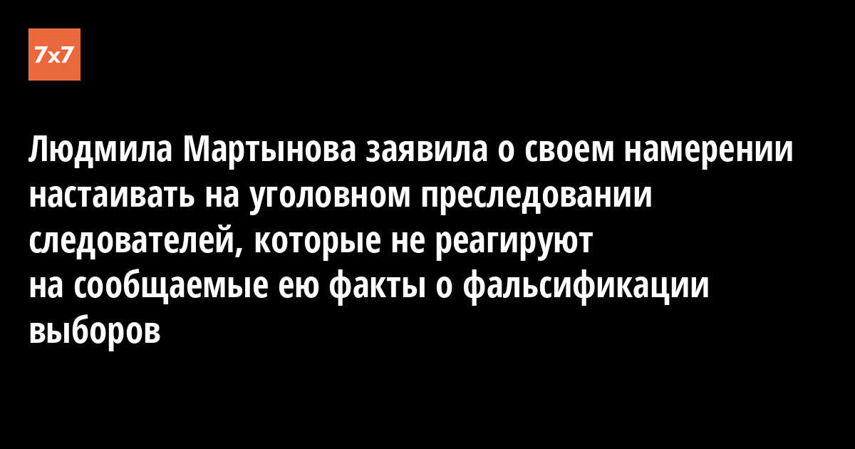 Людмила Мартынова заявила о своем намерении настаивать на уголовном преследовании следователей, которые не реагируют на сообщаемые ею факты о фальсификации выборов