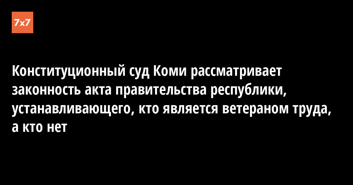 Сегодня Конституционный суд Коми рассматривал запрос прокурора Коми, касающийся проверки на предмет соответствия конституции республики приложения №2 к «Положению о порядке и условиях присвоения звания «Ветеран труда», принятому правительством РК. В представленный в этом приложении перечень трудовых наград, гарантирующих присвоение ветеранского звания, не вошли некоторые категории ведомственных знаков отличия в труде, в связи с чем часть населения оказалась ущемленной в правах.