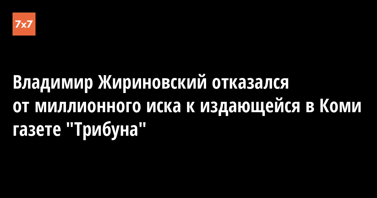 Сегодня в Сыктывкарский городской суд пришел отказ Владимира Жириновского от иска к республиканской газете «Трибуна». Ранее в этот же день судья Сыктывкарского суда Елена Нагибина решила оставить иск г-на Жириновского без рассмотрения.