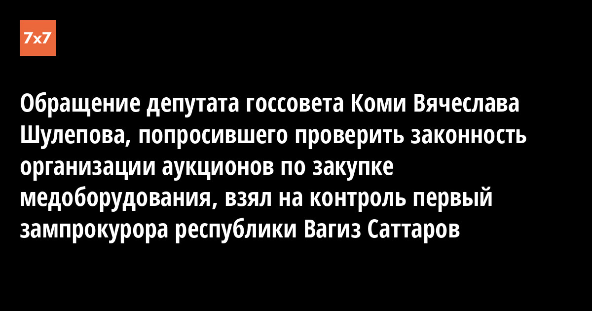 Обращение депутата госсовета Коми Вячеслава Шулепова, попросившего проверить законность организации аукционов по закупке медоборудования, взял на контроль первый зампрокурора республики Вагиз Саттаров