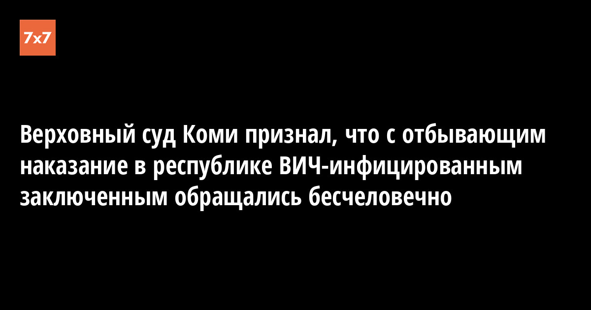 Вчера, 7 ноября, Верховный суд Коми, удовлетворив кассационную жалобу на решение Сыктывкарского горсуда, признал, что медицинское обслуживание ВИЧ-инфицированного заключенного А. в исправительных колониях Коми не отвечало требованиям статьи 3 Европейской конвенции по правам человека («никто не должен подвергаться ни пыткам, ни бесчеловечному или унижающему достоинство обращению или наказанию»).