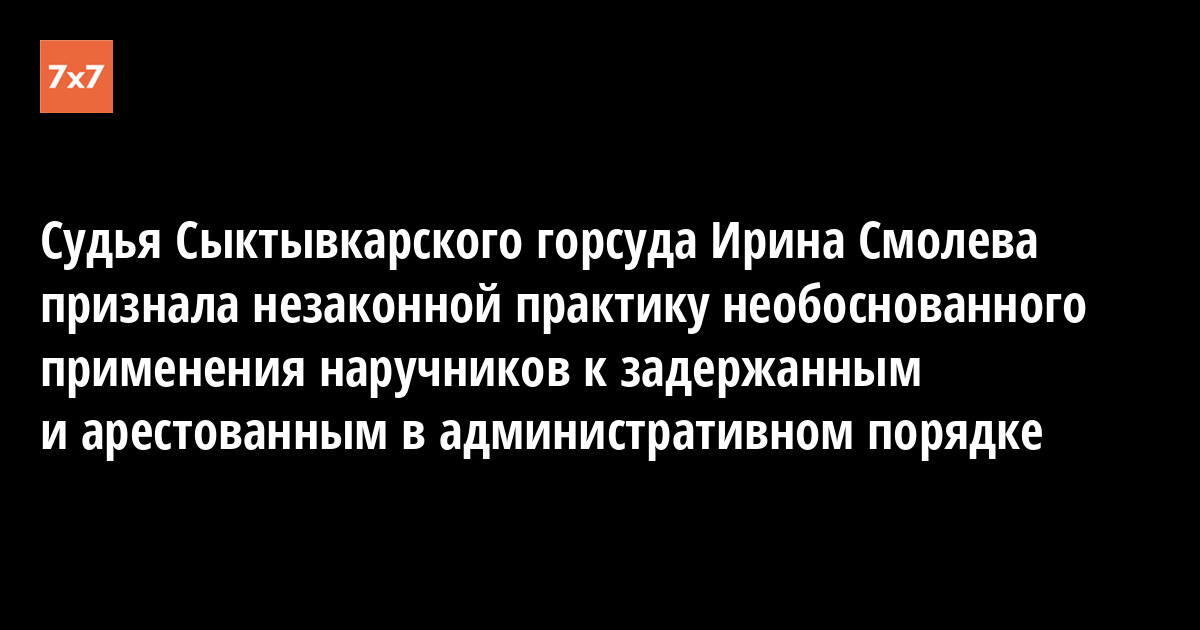 Судья Сыктывкарского горсуда Ирина Смолева, частично удовлетворив требования Александра Федорова, оспаривавшего условия содержания его в спецприемнике УВД по Сыктывкару и перевозки в суд в октябре прошлого года, признала незаконной существующую практику необоснованного применения наручников в отношении административно задержанных и арестованных лиц.