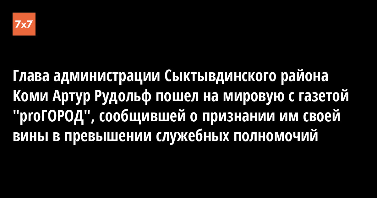 Вчерашнее заседание Сыктывкарского городского суда, рассматривавшего иск главы администрации Сыктывдинского района Артура Рудольфа к рекламно-информационному изданию «proГОРОД», завершилось договоренностью сторон о заключении мирового соглашения. Г-н Рудольф, который оспаривал опубликованные газетой сведения о признании им своей вины в инкриминируемом ему превышении должностных полномочий, в результате чего казне муниципалитета был причинен значительный ущерб, принял предложение представителя ответчика высказать на страницах издания свои возражения по поводу публикации.
