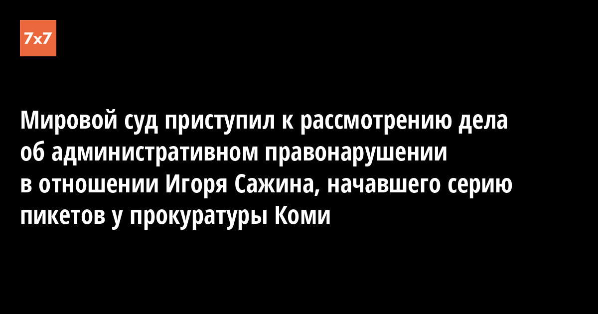 Сегодня, 17 ноября, мировой суд Катаевского судебного участка Сыктывкара приступил к рассмотрению дела об административном правонарушении, предусмотренном ч.2 ст. 20.2 КоАП РФ («Нарушение установленного порядка проведения собрания, митинга, демонстрации, шествия или пикетирования»), в отношении председателя Коми правозащитной комиссии (КПК) «Мемориал» Игоря Сажина, открывшего 20 сентября серию ежедневных пикетов с требованием к прокуратуре Коми опротестовать постановление администрации Сыктывкара, из-за которого Стефановская площадь столицы республики стала недоступна для проведения публичных мероприятий. Во время заседания выяснилось, что полицейские, составлявшие протокол о правонарушении, неверно указали место проведения г-ном Сажиным пикета — согласно схеме, представленной в суд, получалось, что правозащитник стоял с плакатом на проезжей части улицы.