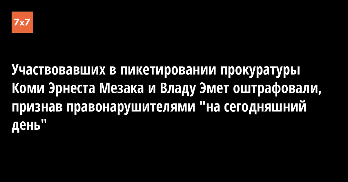 Как стало известно «7x7», до г-на Мезака 2 ноября судья Пушкинского мирового участка Сыктывкара Светлана Кристелева оштрафовала на 1 тыс. руб. за то же самое сыктывкарку Владу Эмет, также пикетировавшую прокуратуру Коми.