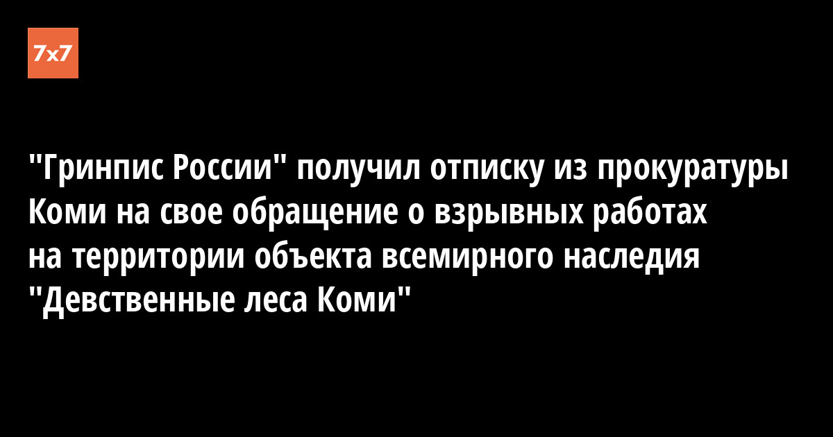 «Гринпис России», как сообщается на сайте этой независимой природозащитной организации, получил «странный ответ» из прокуратуры Коми на свое обращение в генпрокуратуру по поводу взрывных работ на территории объекта всемирного наследия «Девственные леса Коми».